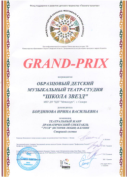 Лауреат Международных и Всероссийских конкурсов и фестивалей детский музыкальный театр-студия «Школа звёзд» |